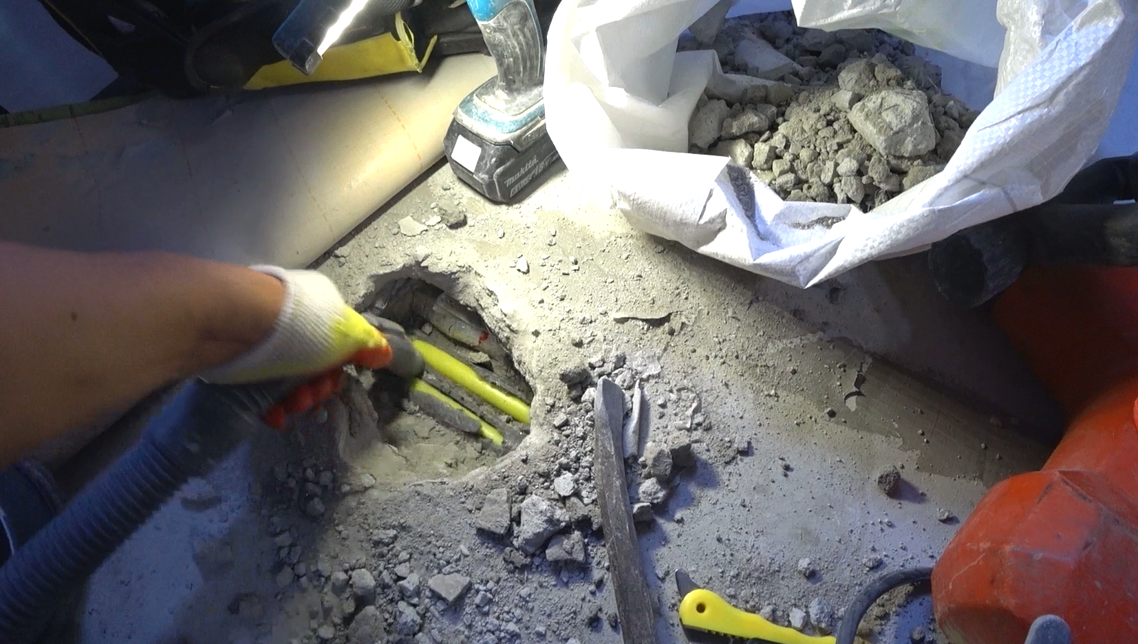 위치를 특정한 뒤엔 바닥 굴착을 진행했어요.
