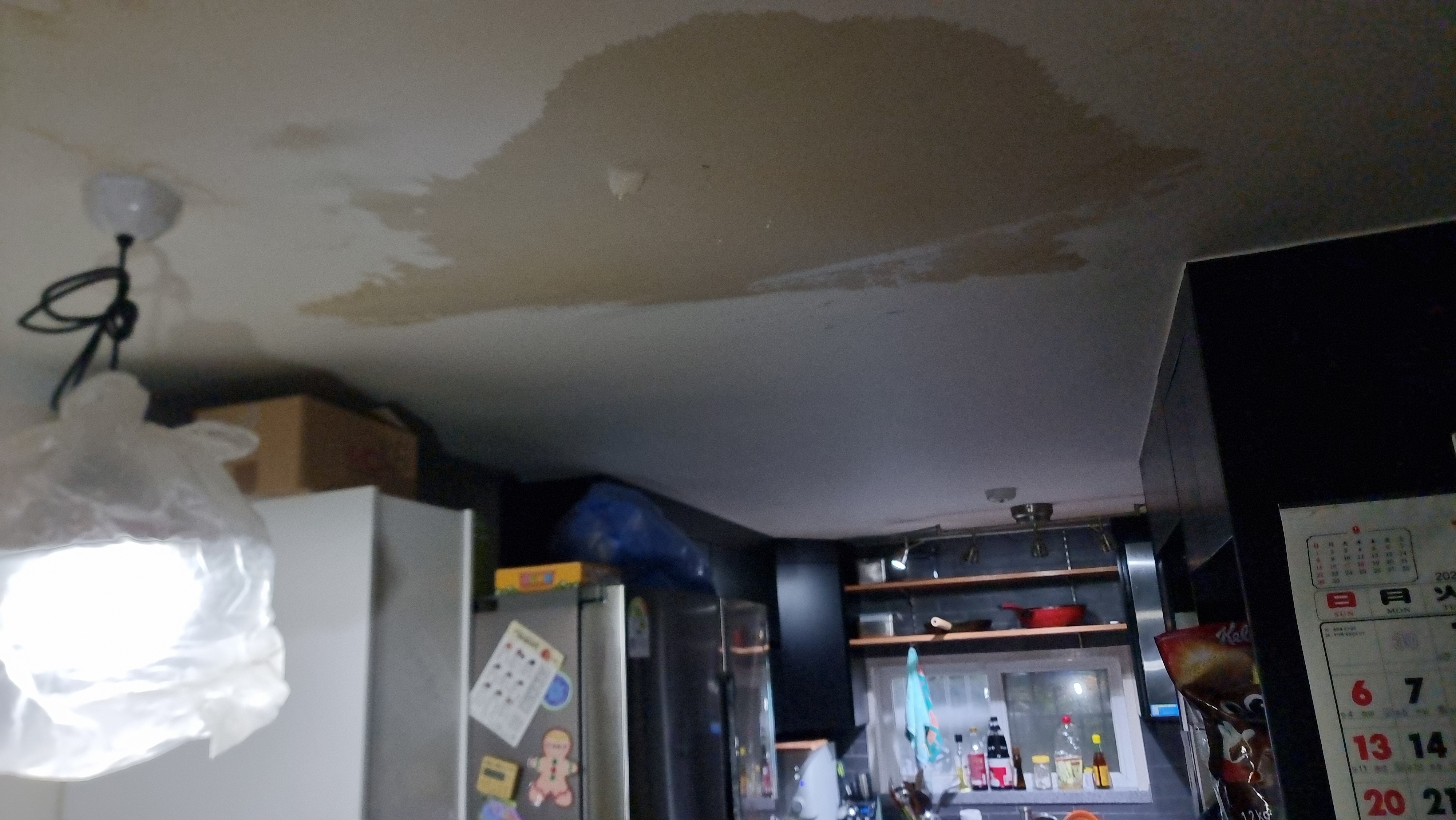 현장에 도착해서 천장 상태를 살펴보니 이미 축축하게 젖어 있었고, 냄새도 굉장히 심했어요.