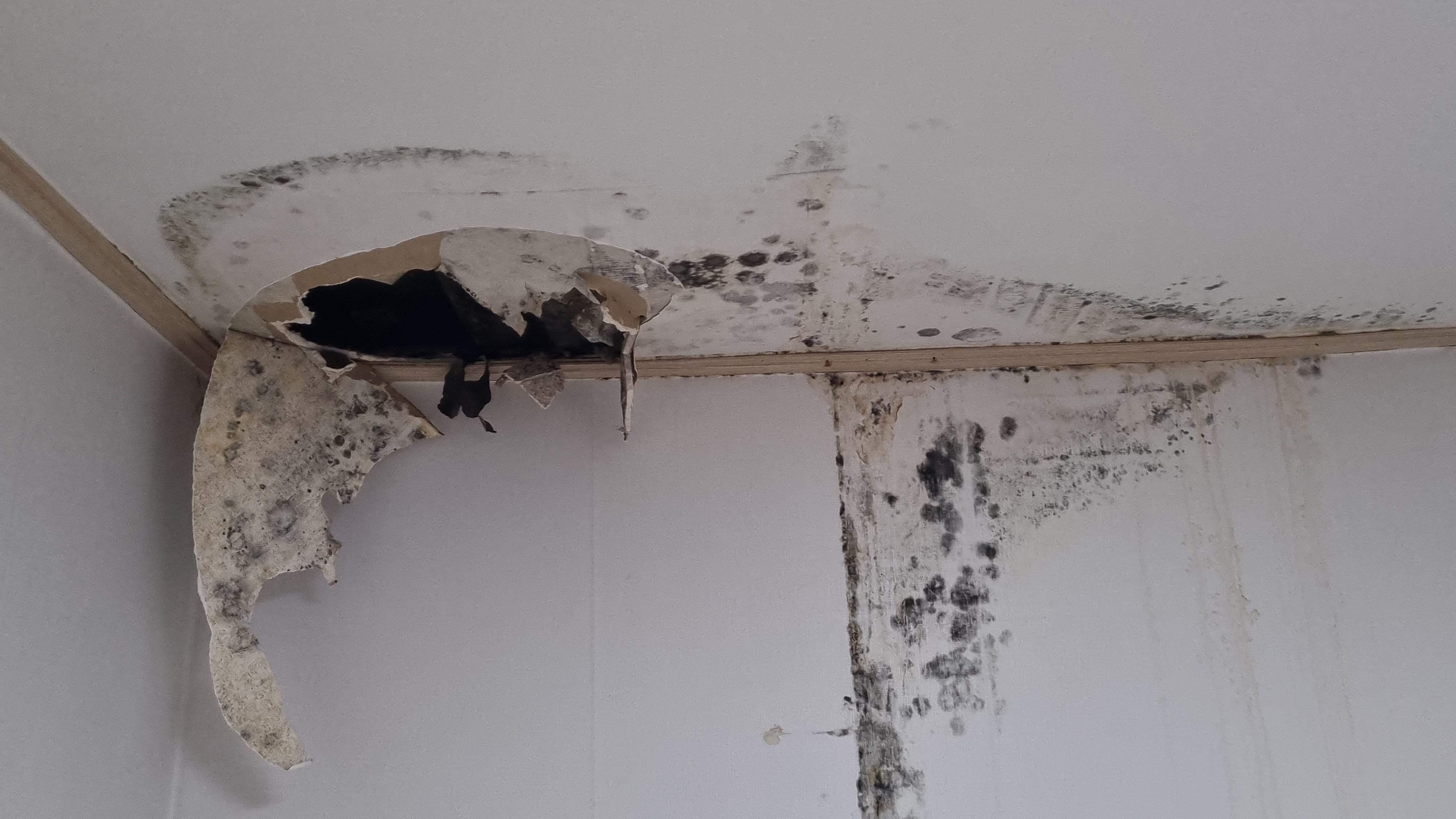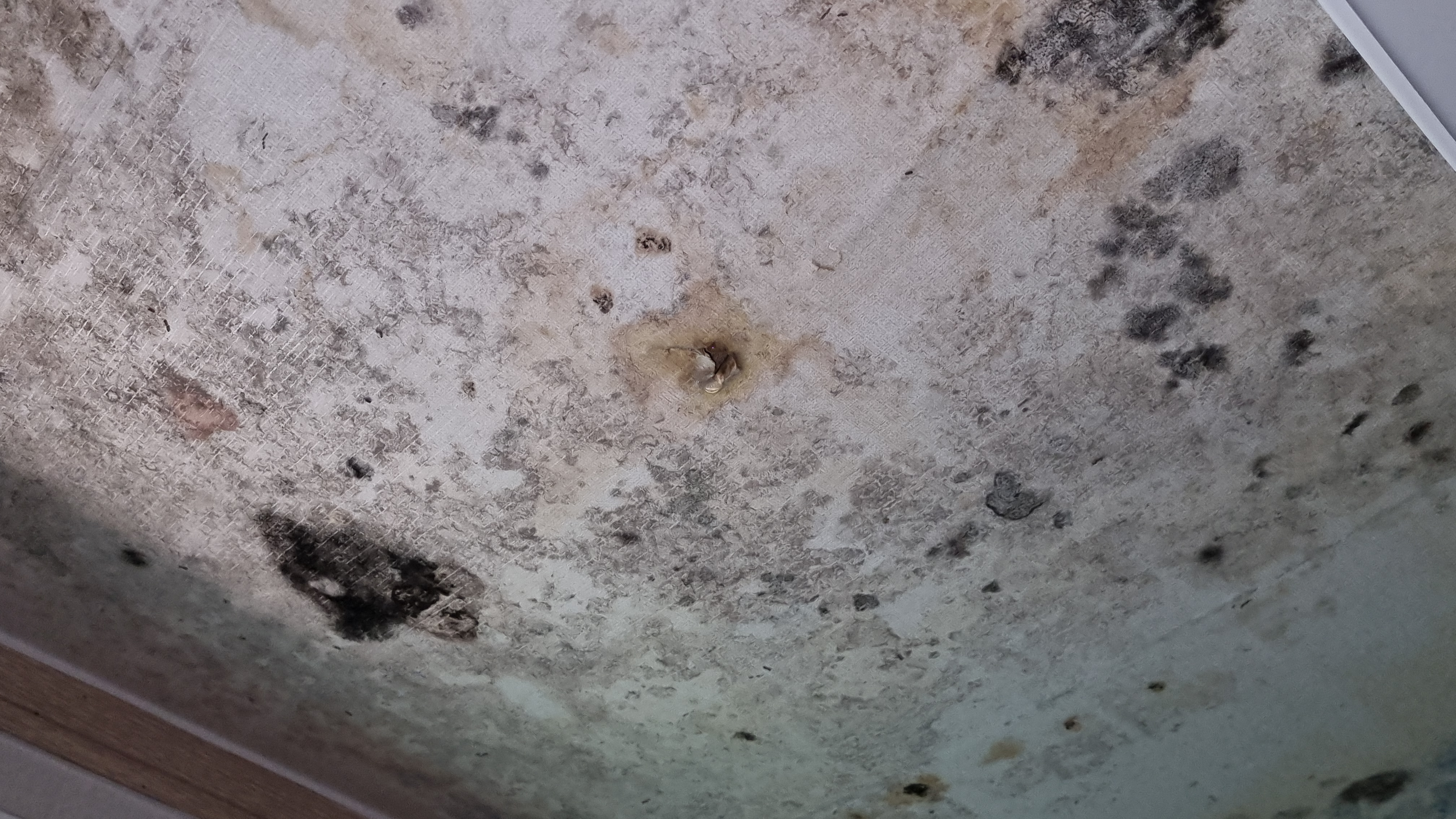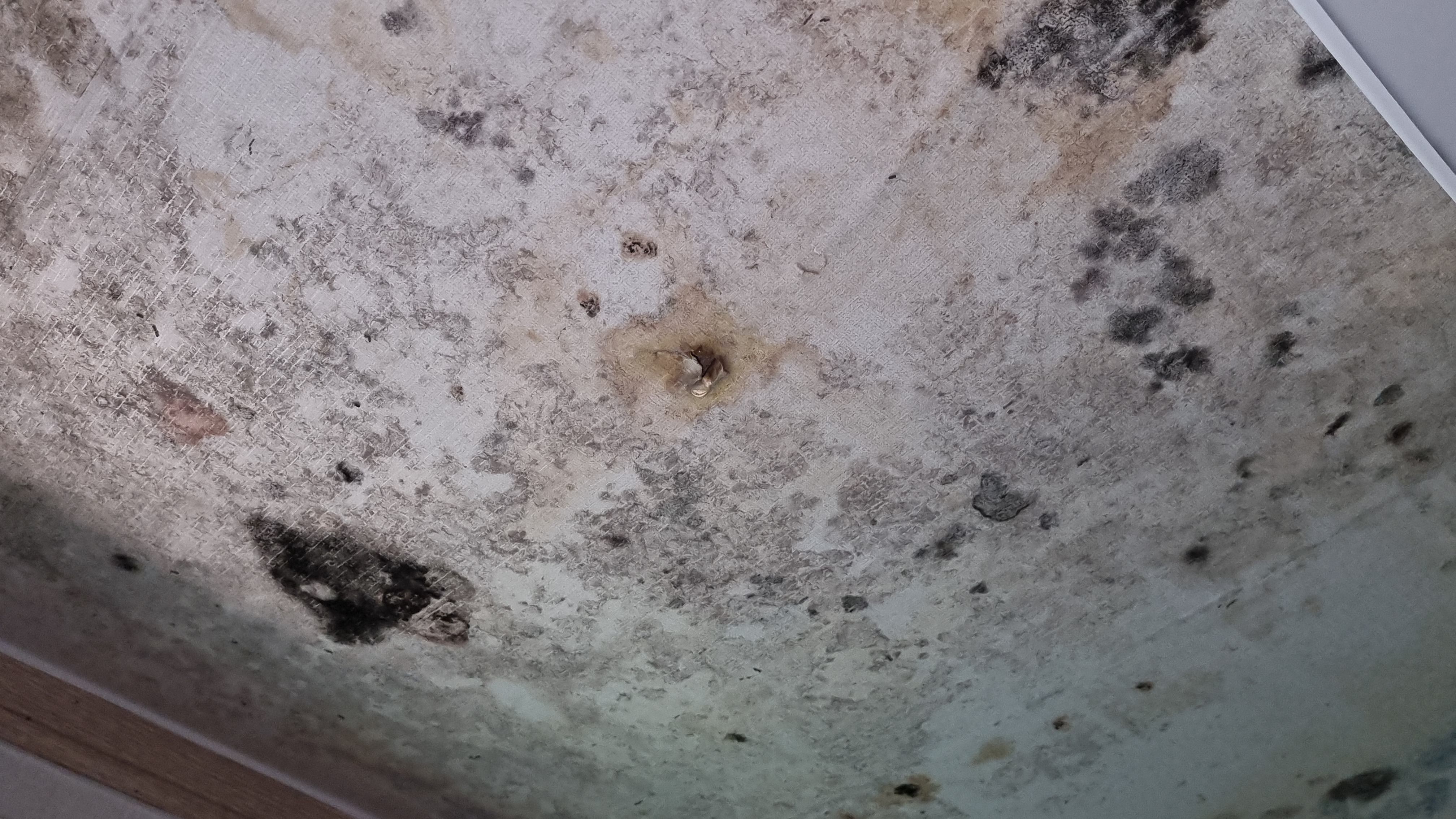 천장 모서리 쪽으로 물이 흘러 벽지까지 물자국이 번진 상황이었습니다.
