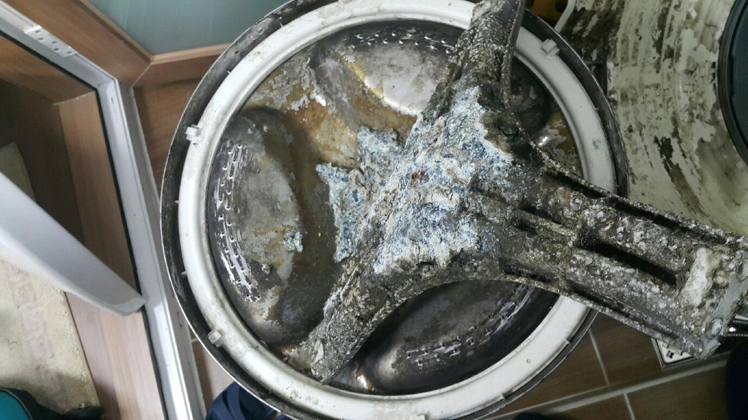 곰팡이가 잘 생기는 도어 고무패킹은 락스를 희석한 물(락스 1: 물 10)에 천을 적셔 틈 사이에 끼워두면 곰팡이 제거에 탁월합니다. 락스를 사용할 땐 반드시 고무장갑 착용과 환기를 병행하세요. 세탁기청소 방법 중 가장 위생에 중요한 파트입니다. - 드럼 내부 세탁조 청소: